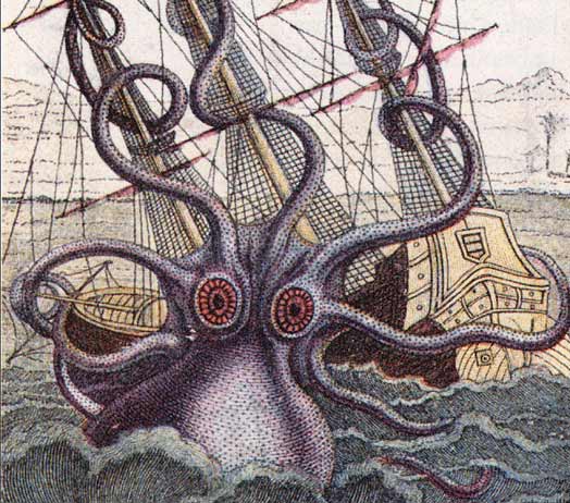 Then, before she could could count to eight—or even one—the sea monster’s great tentacled arm whipped across the water, seizing her right out the air.